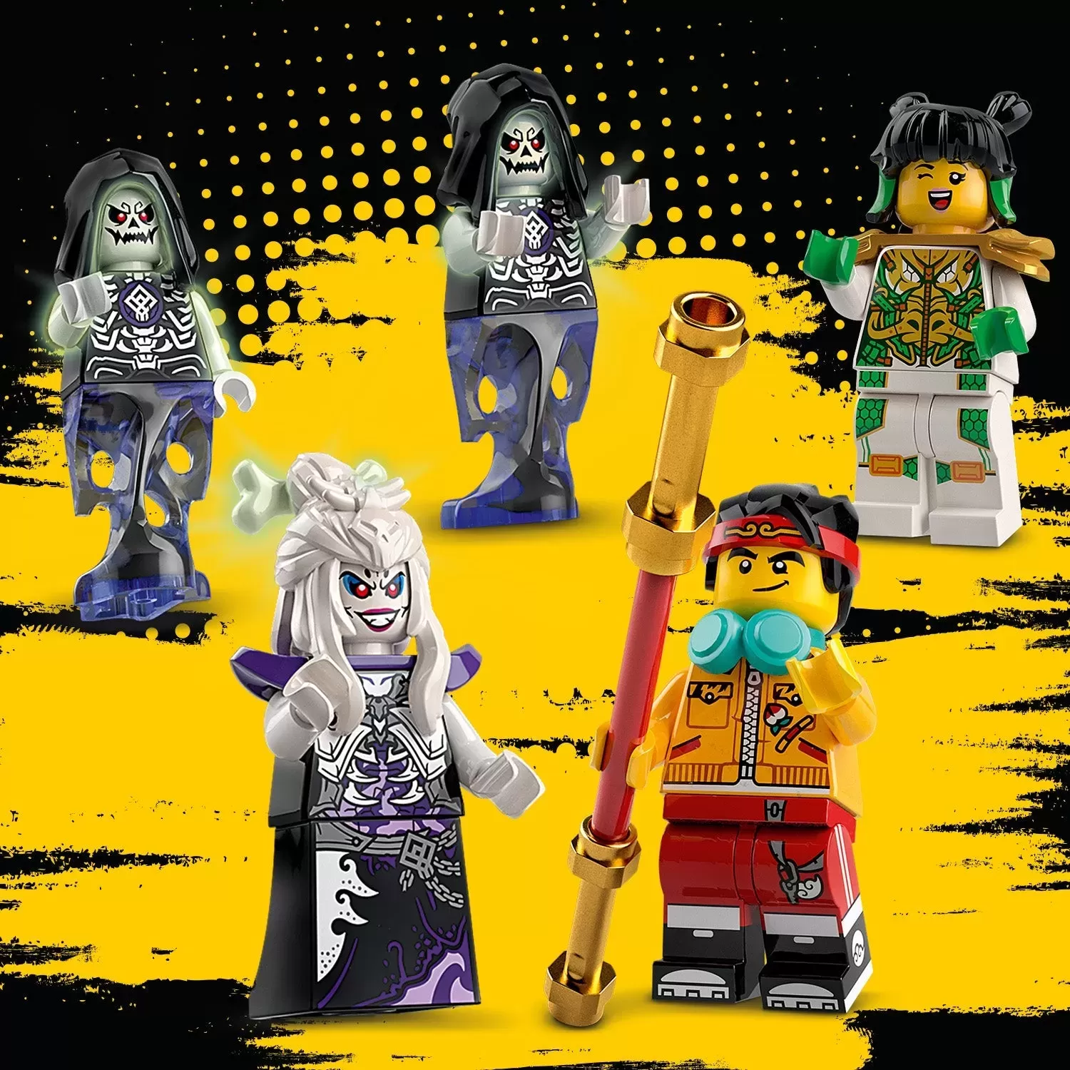 - Includes 5 minifigures: Monkie Kid, Mei, White Bone Demon and 2 Bone Spirits with toy weapons. Monkie Kid’s and Mei’s buildable weapons can be upgraded as their challenges get tougher.